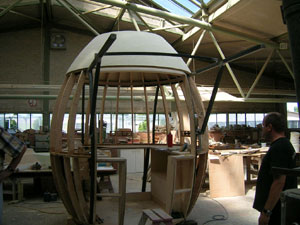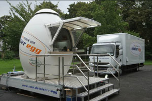 Im Auftrag der Jeschenko MedienAgentur Köln haben wir im Jahr 2006 für den "Mr.Egg"-Tourwagen der CMA in Zusammenarbeit mit den ausführenden Firmen die Tragwerksplanung übernommen. Unten ein Bild während der Bauphase und nach Abschluss.